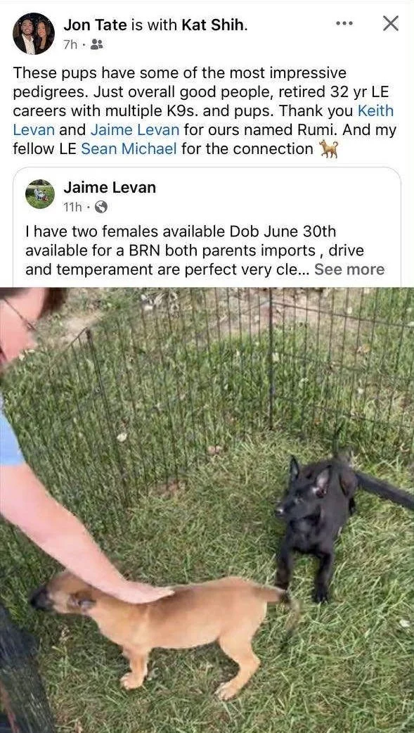 Today, that passion continues as a family tradition. My son Jaime, who has long shared my dedication to dogs and K9 work, is now an integral part of our business. Together, we specialize in breeding, training, and placing exceptional Dutch Shepherds and Belgian Malinois—two breeds renowned for their intelligence, drive, and loyalty.
